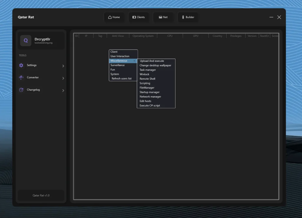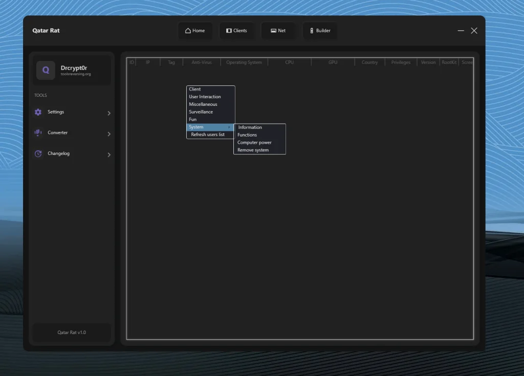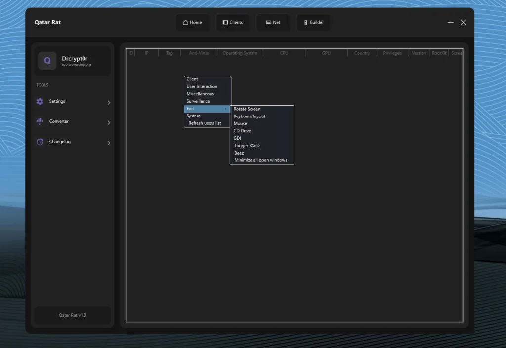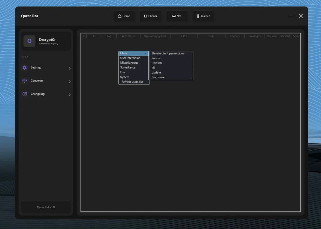 Qatar RAT 2026 represents a powerful and technically sophisticated remote control framework. While remote administration tools have legitimate applications, the combination of surveillance capabilities, destructive features, and customizable payload generation strongly positions this software within the high-risk malware category if used without authorization.
